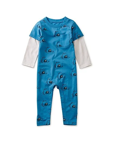 - Design details: standard fit, crew neckline, layered sleeves, full length, snaps at neck, snaps at inseam, patch pocket