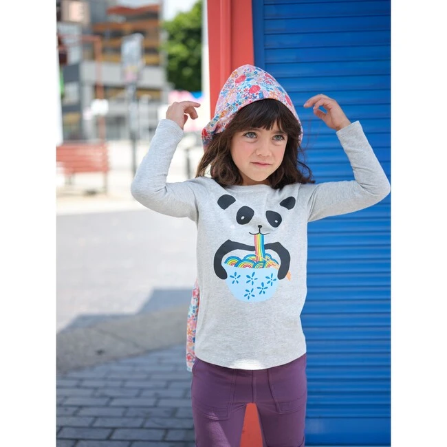The adorable panda is tasting all the colors of the rainbow–and slurping up every drop of fun on this long sleeve tee. Set on a versatile light grey background, this long sleeve tee pairs perfectly with skirts, joggers, and the favorite playwear pants. Crafted of 100% soft cotton jersey. A returning favorite from the Japan collection.