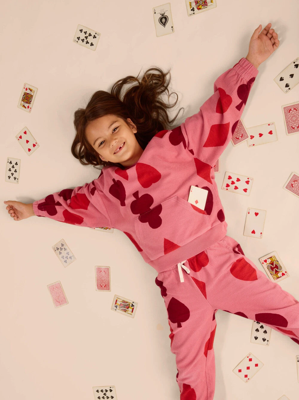 These joggers have style in spades and hearts, diamonds, and clovers! Made from reverse French terry, they showcase the fabrics looped texture on the outside for a one-of-a-kind look, while 100% cotton ensures unbeatable softness. Designed with an easy fit, elastic waist, and fully functional drawcord, they also feature on-seam and back patch pockets for added practicality. Pair them with the matching popover for an effortlessly stylish outfit that’s ready to go!